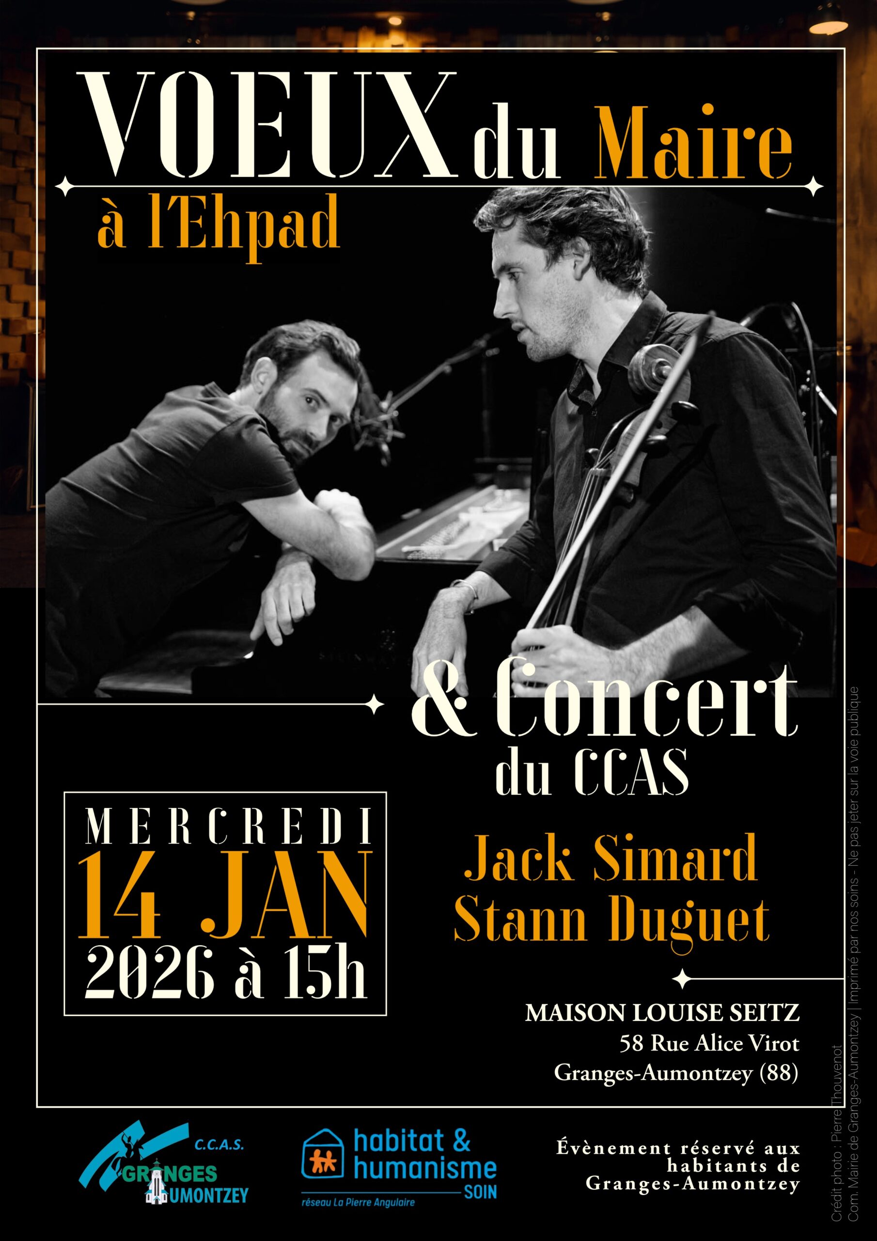 Voeux du Maire aux ainés et goûter du CCAS : Mercredi 14 Janvier 2026 à 15h