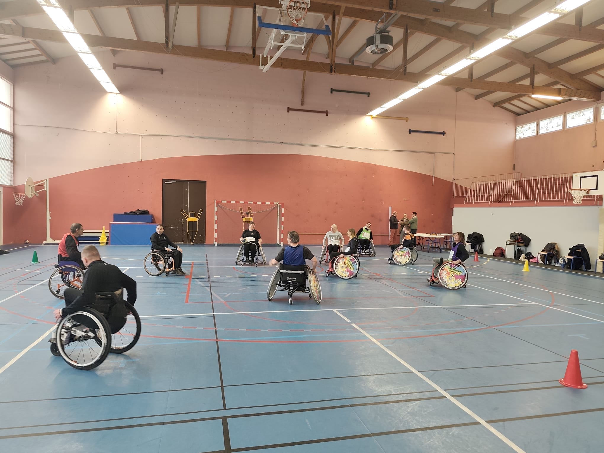Encadrés par Adrien Aigle, salarié du Comité des Vosges de Handball – mis gracieusement à disposition de cette action, et par trois joueurs de l’ASG Handfauteuils, les participants ont pu s’initier à ce sport exigeant grâce à huit fauteuils spécialement adaptés. Trois ateliers ont rythmé la première partie de l’après-midi, offrant à chacun l’opportunité de découvrir les défis physiques et tactiques du handfauteuil : « C’est bien plus difficile qu’il n’y paraît, même pour un sportif comme moi ! » confie un participant. « On sollicite des muscles très spécifiques, et cette expérience casse vraiment les préjugés. »
