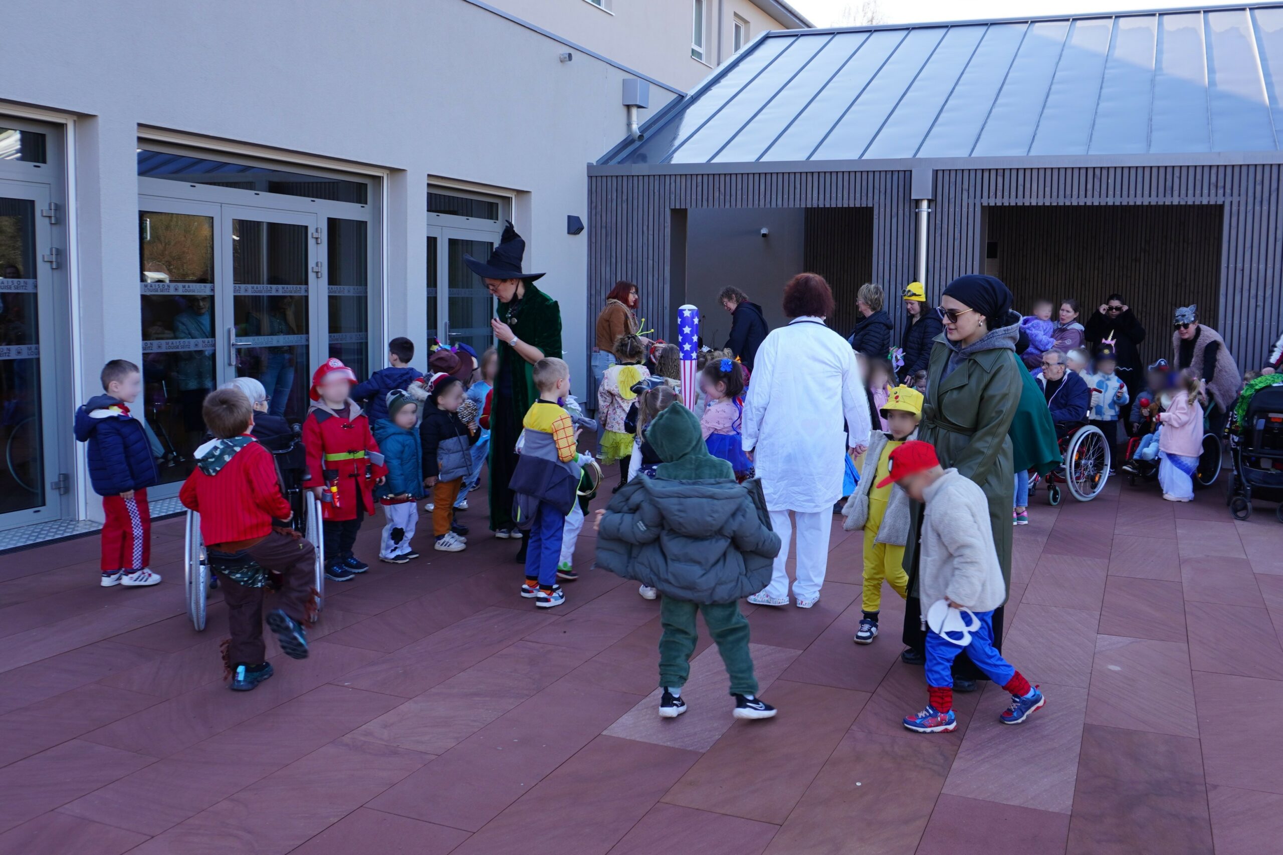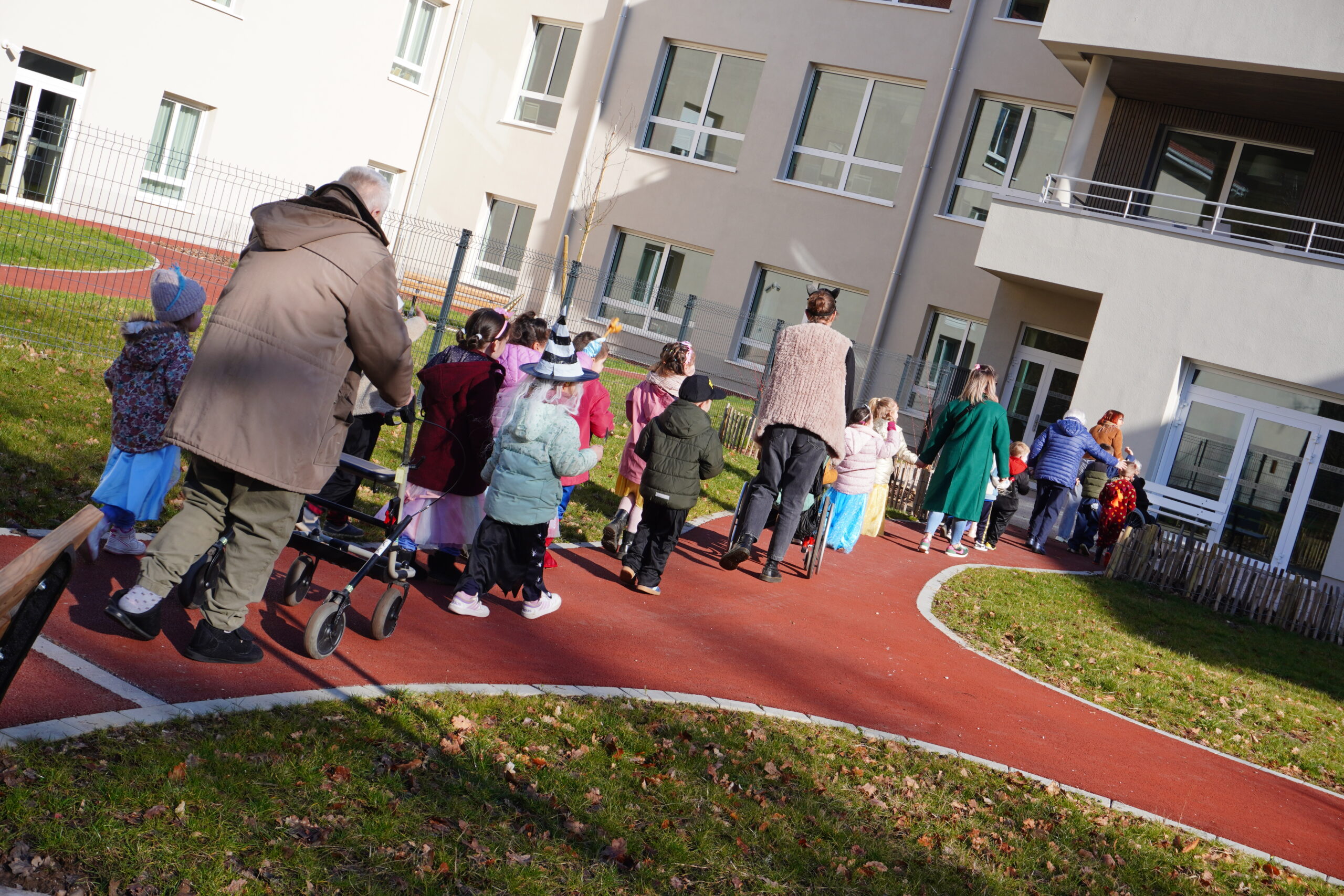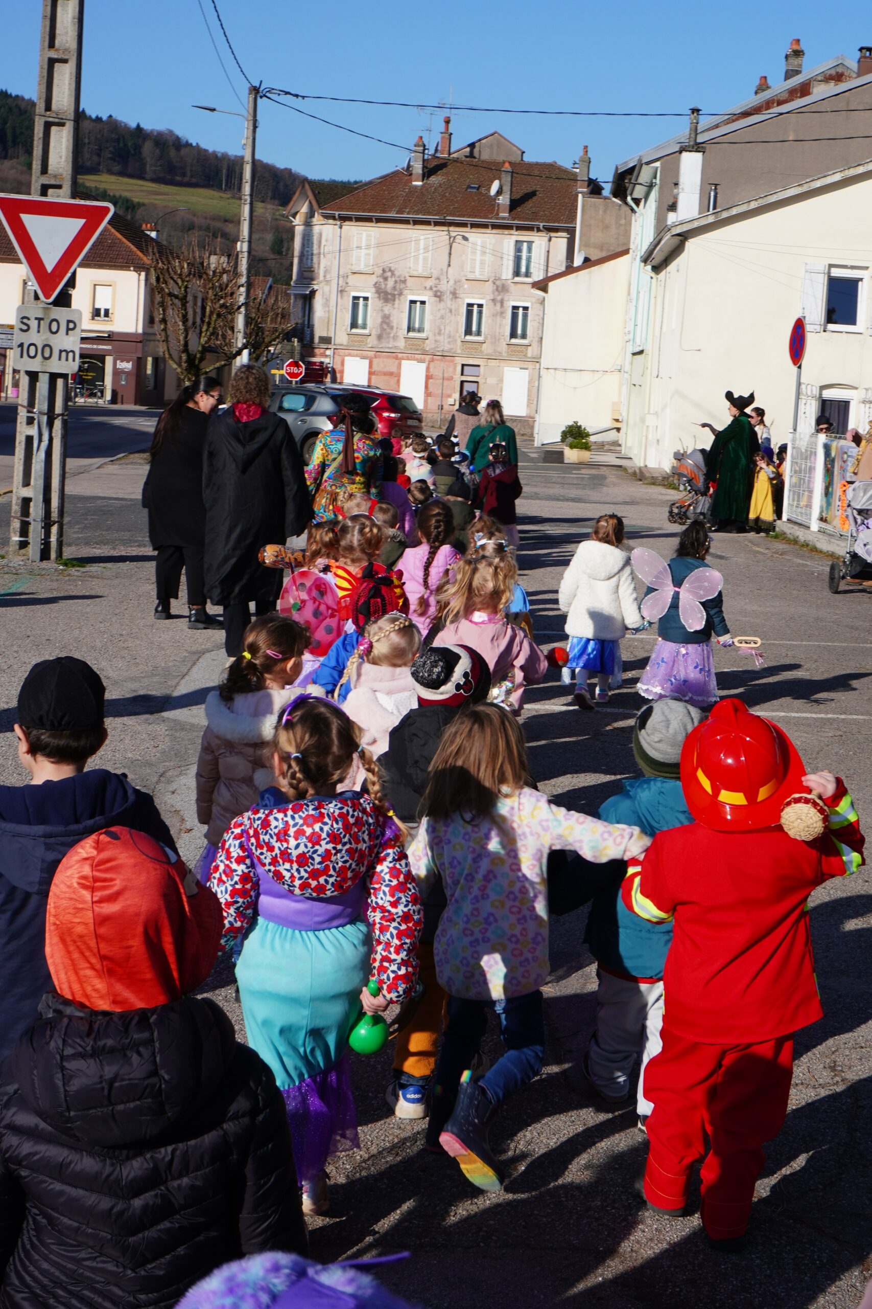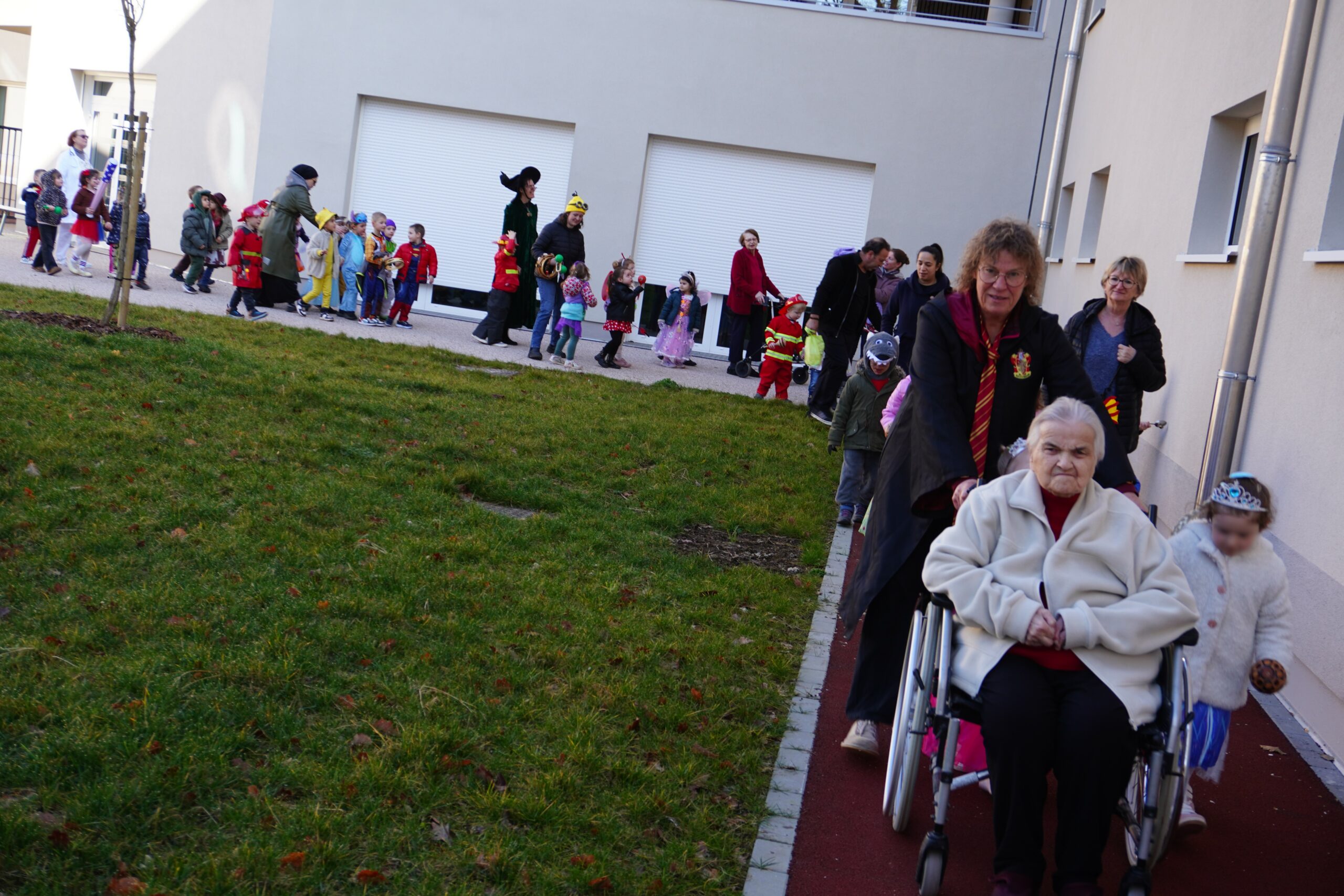 Une fois restaurés, les petits de l’école maternelle sont partis défiler avec leurs enseignantes, leurs Atsem et plusieurs membres de l’entourage des enfants, dans les rues de Granges-Aumontzey, affublés de leurs serre-tête, baguettes magiques et autres apparats portés pour l’occasion. Ils ont tranquillement rejoint l’Ehpad Maison Louise Seitz, pour flâner dehors avec les résidents et saluer les plus fragiles spectateurs, présents à leurs fenêtres. Les princesses, justiciers et autres petits personnages incarnés, se sont ensuite dirigés vers « l’école verte » pour aller jouer dans la cour des grands, l’espace de quelques instants.