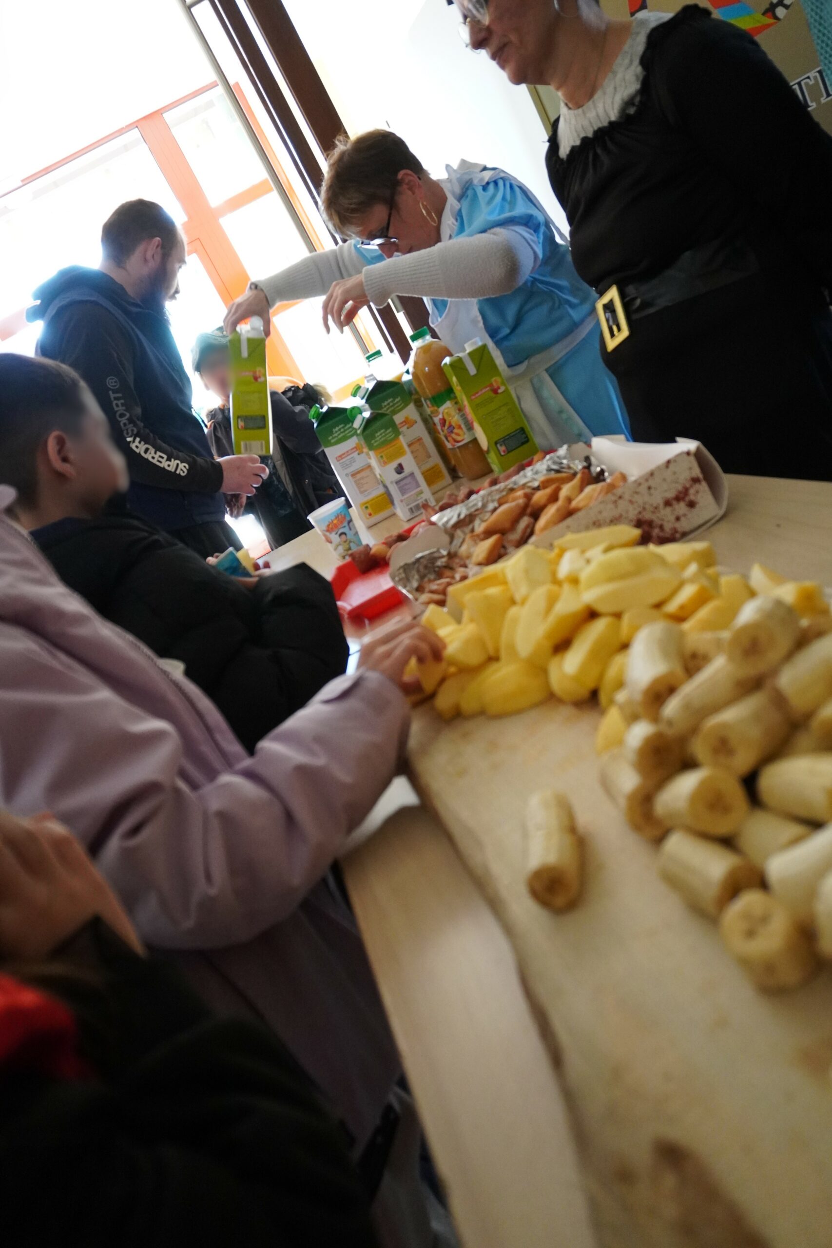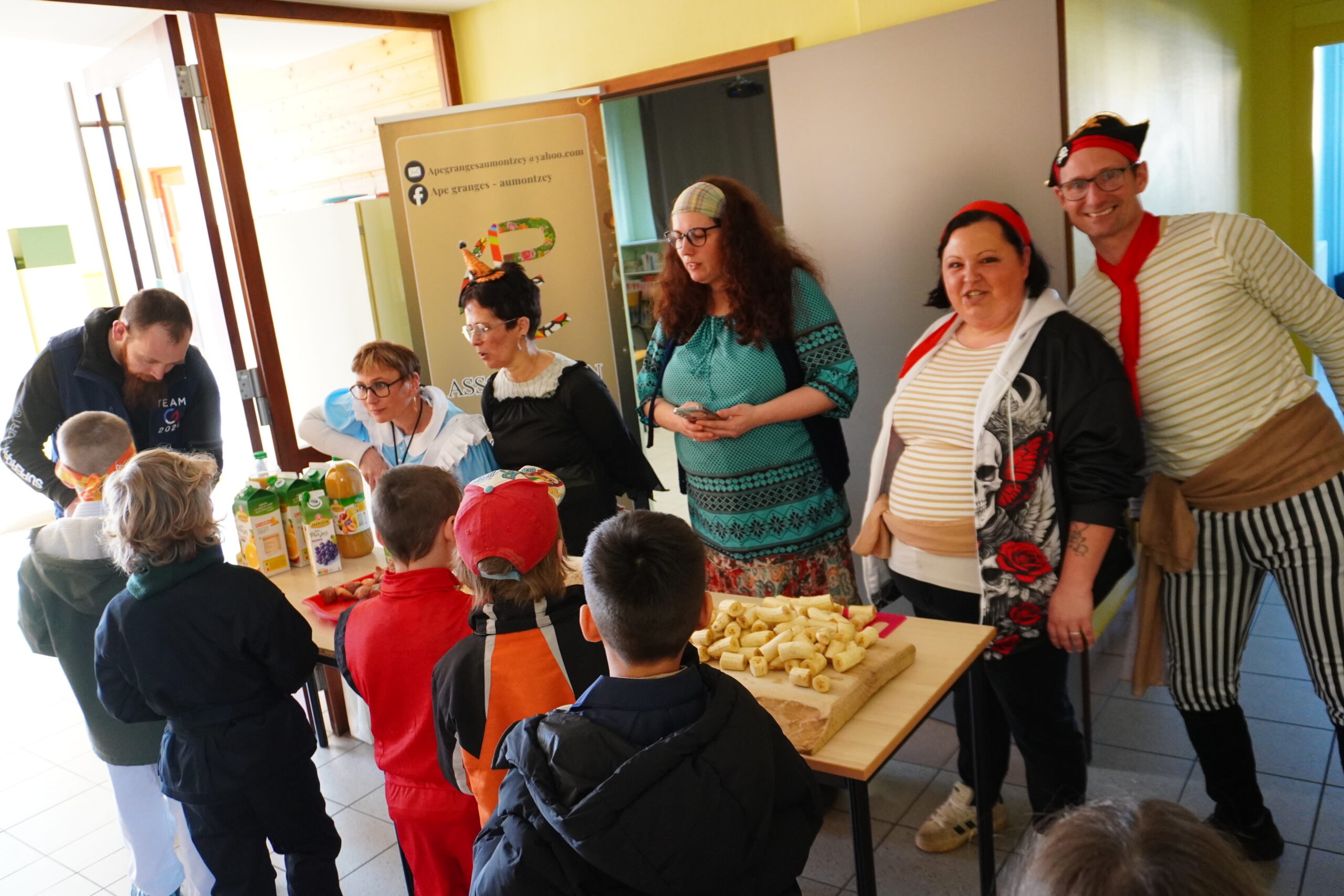 Au programme de la matinée pour tous : détente et gourmandises. Avec la complicité de l’Association des Parents d’Élèves, tous les enfants ont profité d’un délicieux goûter, composé de fruits frais (banane ou pomme) achetés à la supérette Proxi et de beignets, fournis dans les deux boulangeries de la Commune. Les parents d’élèves bénévoles mobilisés tôt le matin ce jour-là, ont également servi des jus de fruits pour agrémenter le tout. Ce goûter a entièrement été offert par leurs soins.