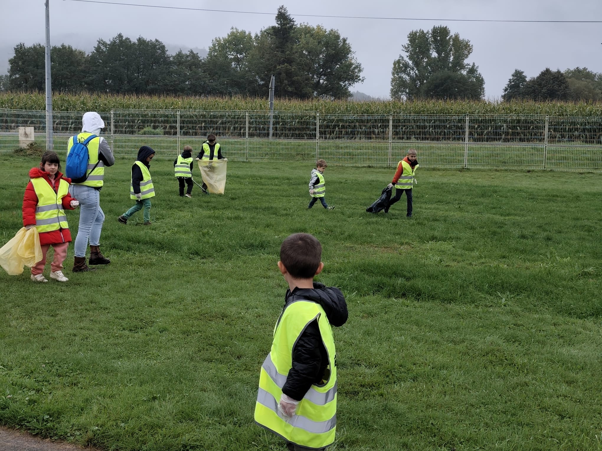 Chasubles jaune fluo sur le dos, une jeune tribu du périscolaire a arpenté le pôle socioculturel Simone Veil et ses alentours le mercredi 24 septembre 2025. Laetitia Daeschler, adjointe Fêtes, Cérémonies, Vie de la cité et Citoyenneté a de nouveau organisé un Challenge zéro déchet, en partenariat avec les acteurs du pôle socioculturel. Les enfants, heureux de mettre le nez dehors malgré le froid et la grisaille, se sont munis de sacs noirs et jaunes et ont coopéré en petits groupes pour ramasser les déchets. Bastien Liegeois, Directeur du pôle socioculturel, se réjouit de cet après-midi, à la fin duquel « les enfants ont pris beaucoup de plaisir à raconter ce qu’ils ont fait, fiers et satisfaits de leur action ». Laetitia Daeschler ajoute : « Bien qu’aucune association n’ait été présente, nous avons pu compter sur la participation d’une jeune mère de famille et de deux habitants de Granges-Aumontzey pour accompagner les enfants dans ce projet pédagogique à visée éco-responsable. » Un goûter a ensuite été partagé entre tous les participants à cette action.