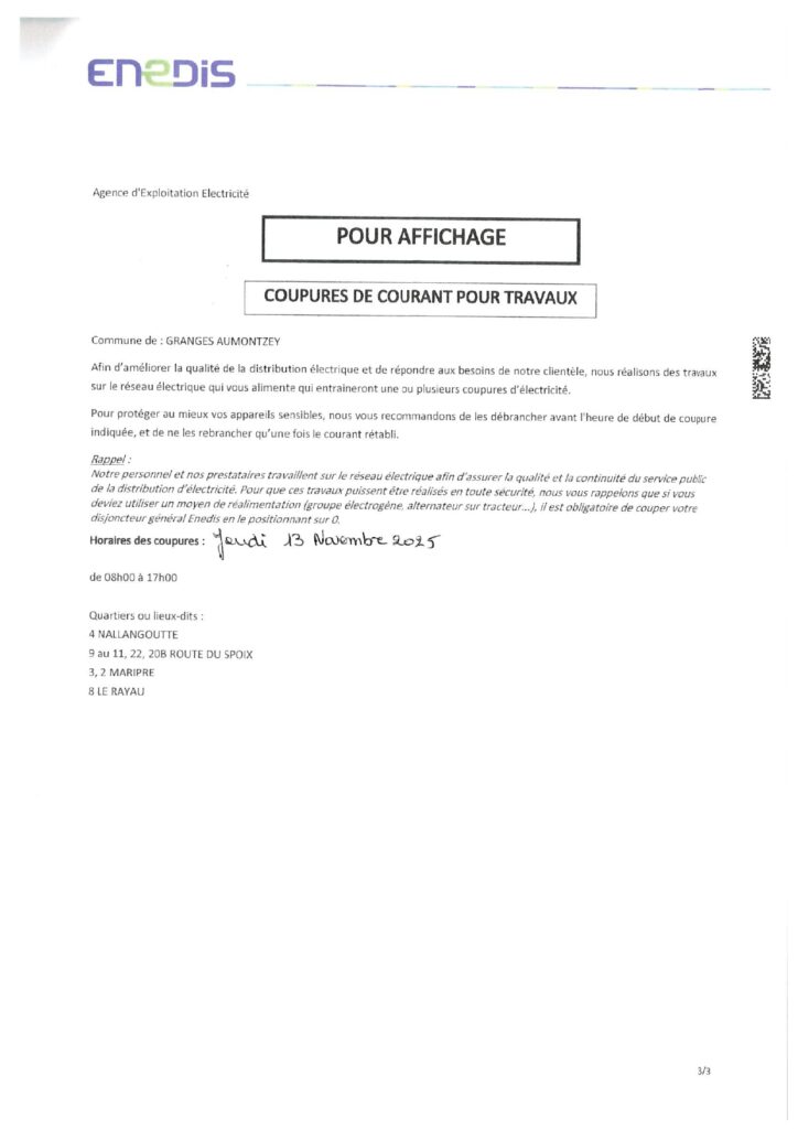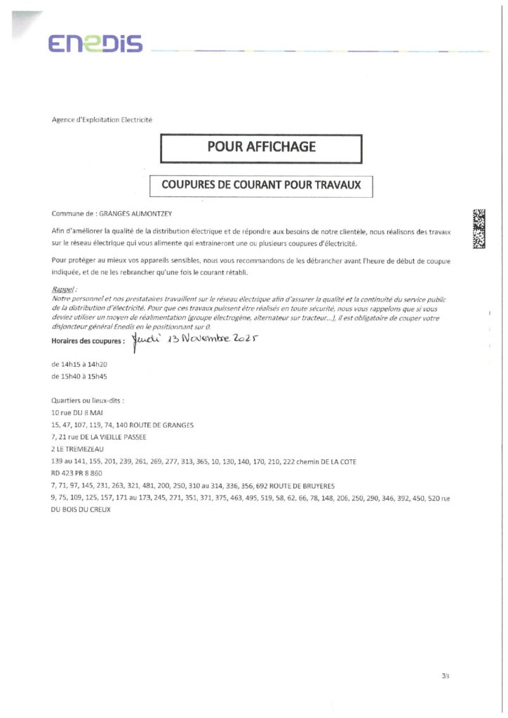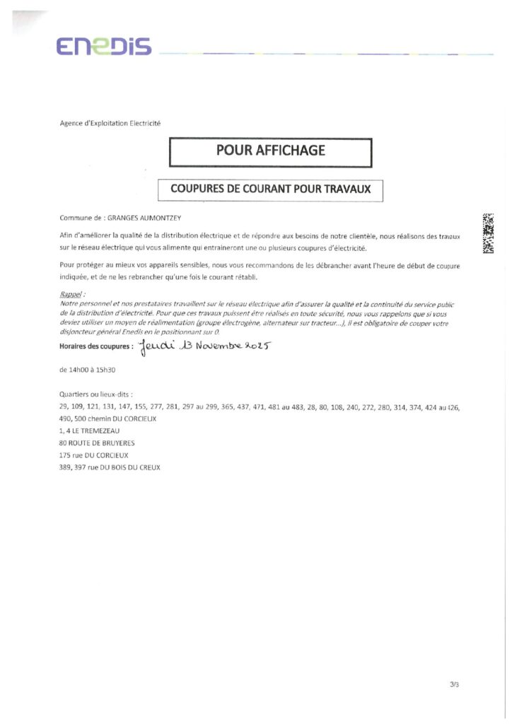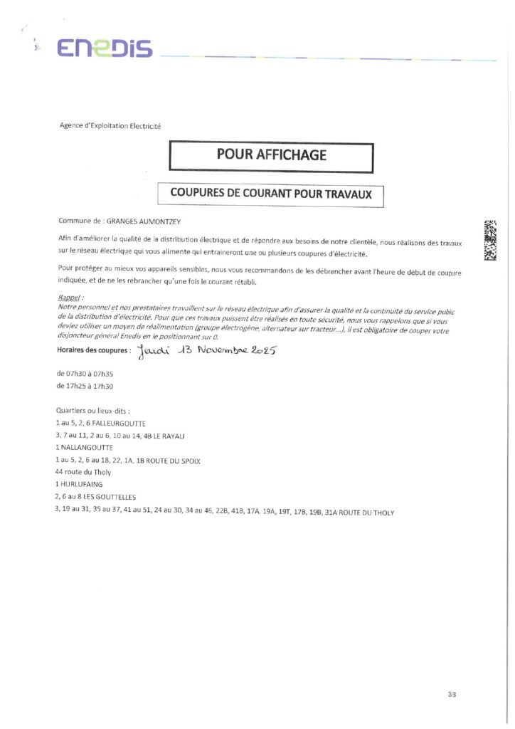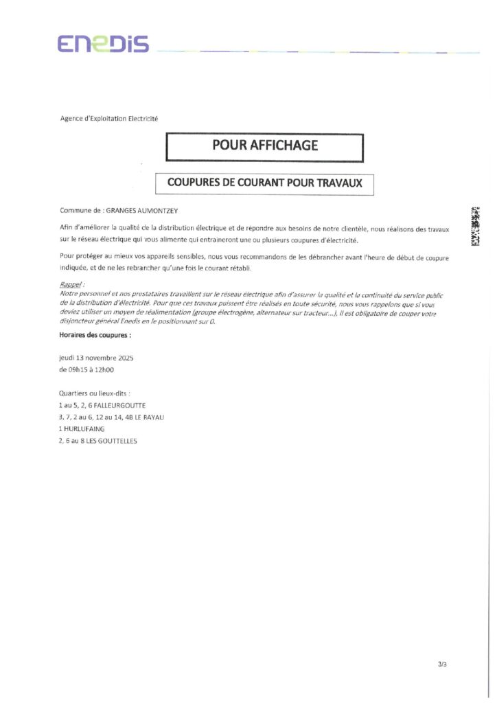 Coupures de courant : jeudi 13 novembre 2025 (en lieu et place du mardi 18 novembre)