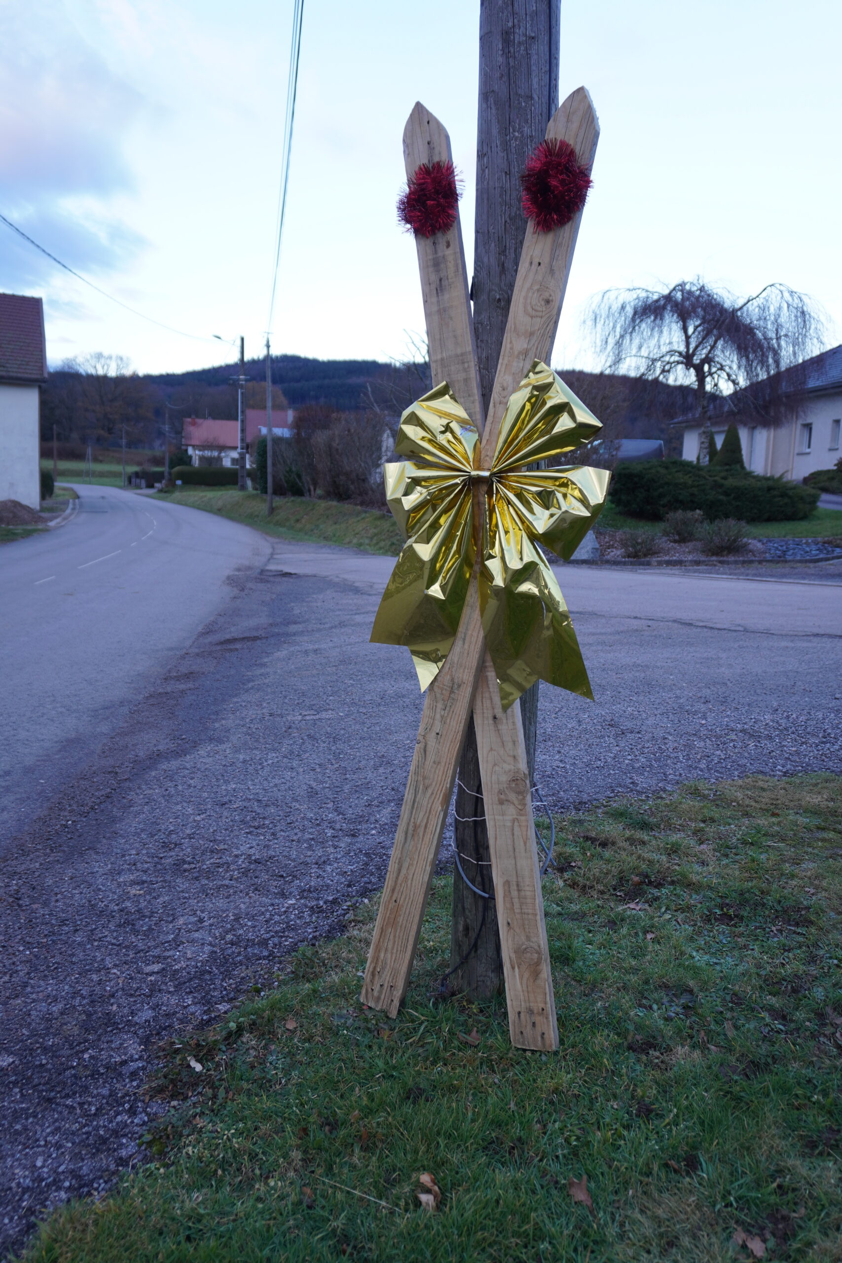 Les entreprises locales s’impliquent également. Grâce aux dons de palettes de Modalu et MCV, toutes deux installées à Granges-Aumontzey, l’équipe a pu concrétiser ses idées à moindre coût. Résultat, des « grands skis » exposés aux entrées du village, et des « petits skis » alternant avec des « sapins », pour égayer les bas-côtés.