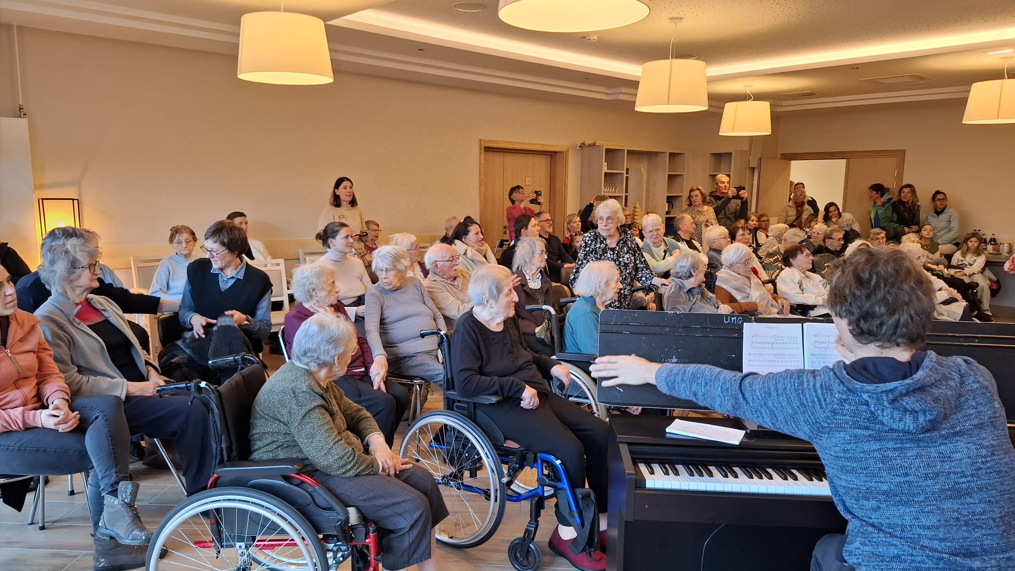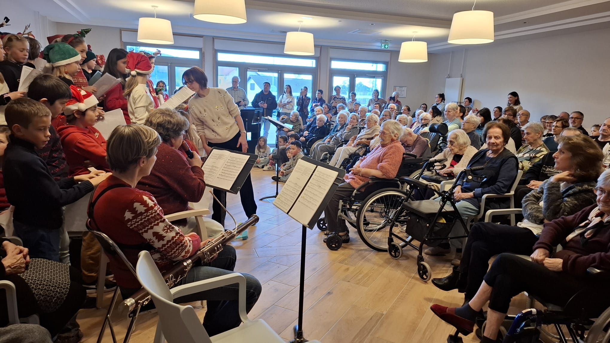 La salle d’animation de la Maison Louise Seitz a affiché complet, avec un public nombreux : résidents, proches et familles des jeunes artistes. Pendant une heure, les enfants ont chanté avec cœur devant un public attentif et souriant, autour de ce projet intergénérationnel à souhait.