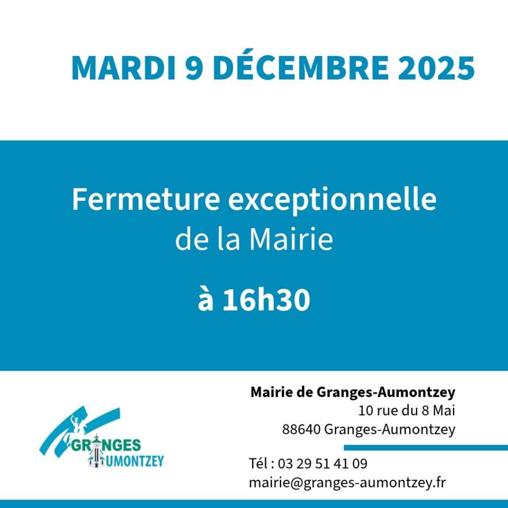 Fermeture exceptionnelle de la Mairie à 16h30 : Mardi 9 décembre 2025
