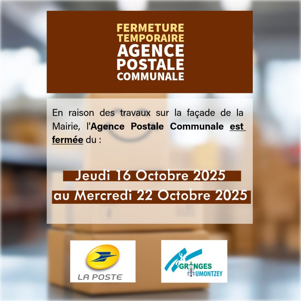 Fermeture temporaire : Agence Postale Communale du 16 au 22 octobre 2025