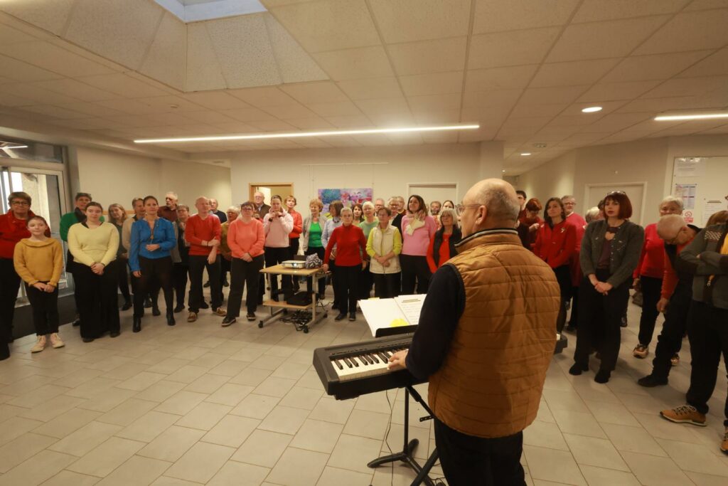 Après un accueil convivial de la présidente de l’association Marion Kieffer Rys, toute l’équipe a entamé la journée par un échauffement collectif, destiné à réveiller les cordes vocales et à mettre le corps en mouvement.