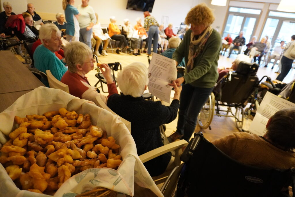 Afin de célébrer ensemble le carnaval, les participants entourés de leur famille, ont profité ensemble d’un goûter confectionné par les cuisiniers de la Maison. Distribués par les bénévoles du CCAS, accompagnés de leur Vice-Présidente Corinne Mourot, et du personnel de la maison de retraite, les incontournables beignets ont été dégustés avec envie.