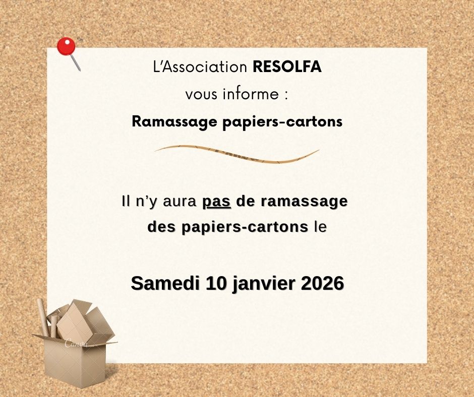 Résolfa : pas de ramassage de carton le SAMEDI 10 JANVIER 2026