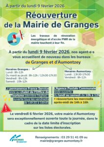 Réouverture de la Mairie de Granges le Lundi 9 février 2026