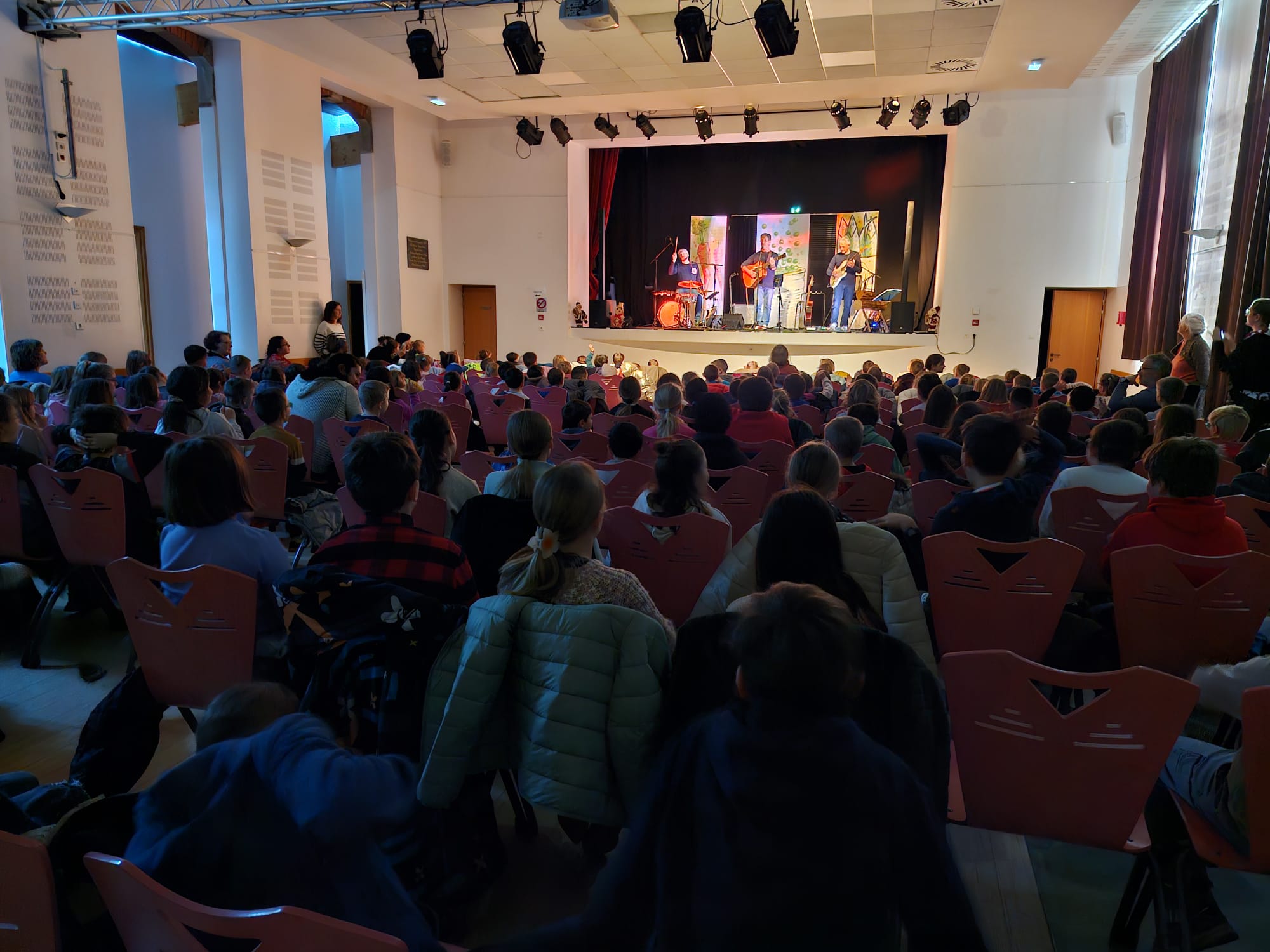 Petits et grands se sont réunis pour assister au spectacle de Jean-Michel Rey et compagnie, connu et reconnu pour ses prestations auprès des enfants. Il propose de la musique, des chants et surtout de nombreuses interactions avec les enfants, les faisant participer et jouer aux devinettes de mots. Corinne Mourot, adjointe au maire a trouvé « les enfants manifestement attentifs et ravis de leur matinée ».
