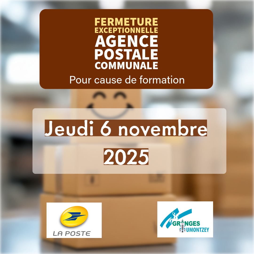 Fermeture exceptionnelle de l’Agence Postale Communale : Jeudi 6 et Mercredi 19 Novembre 2025